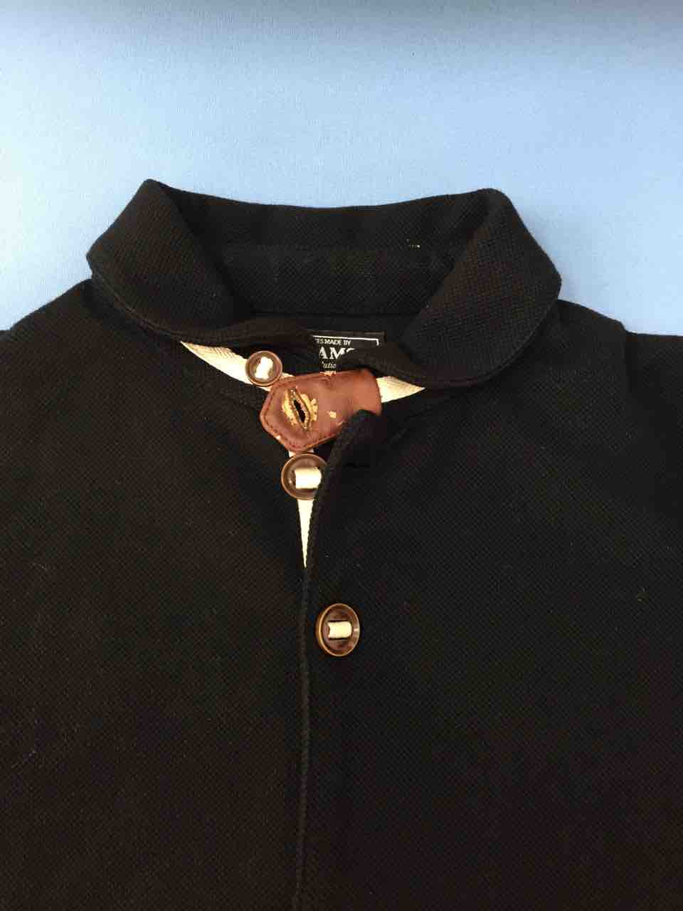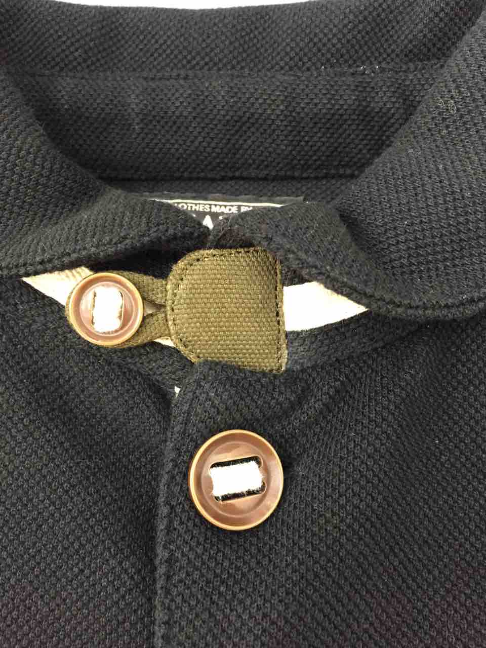 襟元のボタンホールが合成皮革で作られていました。