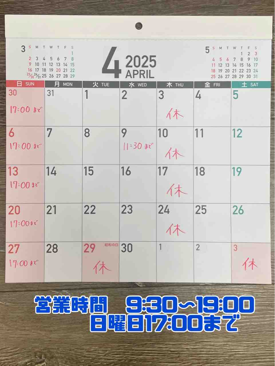 営業時間 9:30〜19:00 / 日曜日は17:00閉店